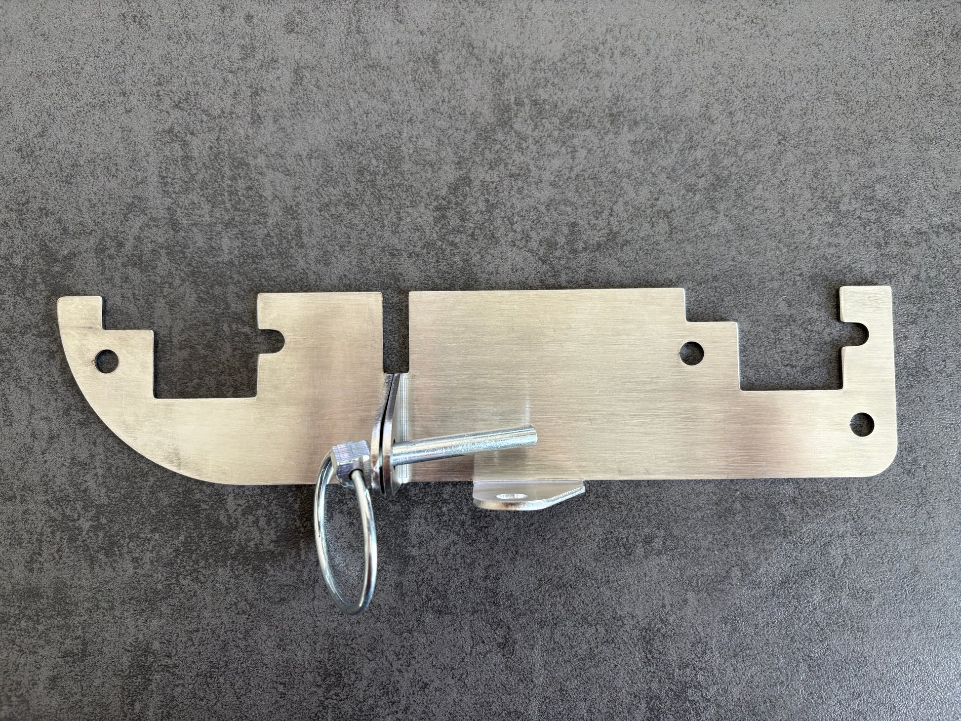 Die Montage erfolgt ganz ohne Bohren – die Winkel werden einfach mit den originalen Befestigungsschrauben der Schließzylinder fixiert. Anschließend lässt sich die Sicherung mit einem Klappsplint verriegeln. Für mehr Flexibilität haben wir an einem Winkel eine zusätzliche Bohrung integriert, an der der Klappsplint sicher verstaut werden kann, falls er nicht genutzt wird.